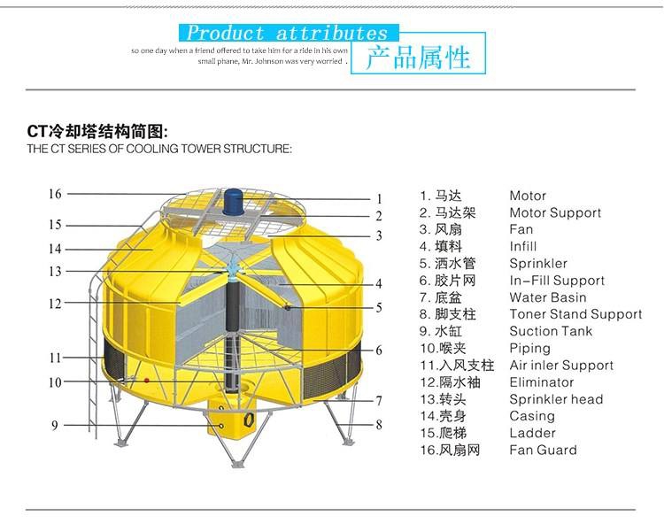 冷卻塔的作用是將攜帶廢熱的冷卻水在塔體內(nèi)部與空氣進(jìn)行熱交換,使廢熱傳輸給空氣并散入大氣中。